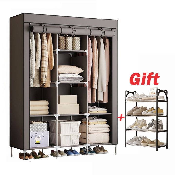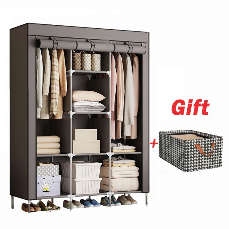 Jaza Keja Foldable Clothes Closet Organizer Inner Layer Handle Fabric Storage Baskets Box Steel Frame Stackable Shelf Wardrobe for Clothes Toys Houndstooth,47*28*20